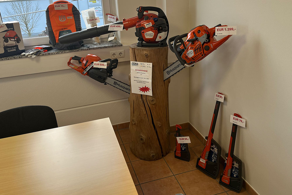 Im Bereich Forst- & Gartengeräte bietet TEKO als Handelspartner einen umfassenden Service für Marken wie Husqvarna, Sabo und Toro. Neben dem Verkauf von neuen Geräten kümmern wir uns aber auch um Wartungen, Inspektionen und Reparaturen anderer gängigen Marken. Ob Kettensägen, Freischneider, Rasenmäher oder Vertikutierer – bei uns erhalten Sie professionelle Unterstützung.